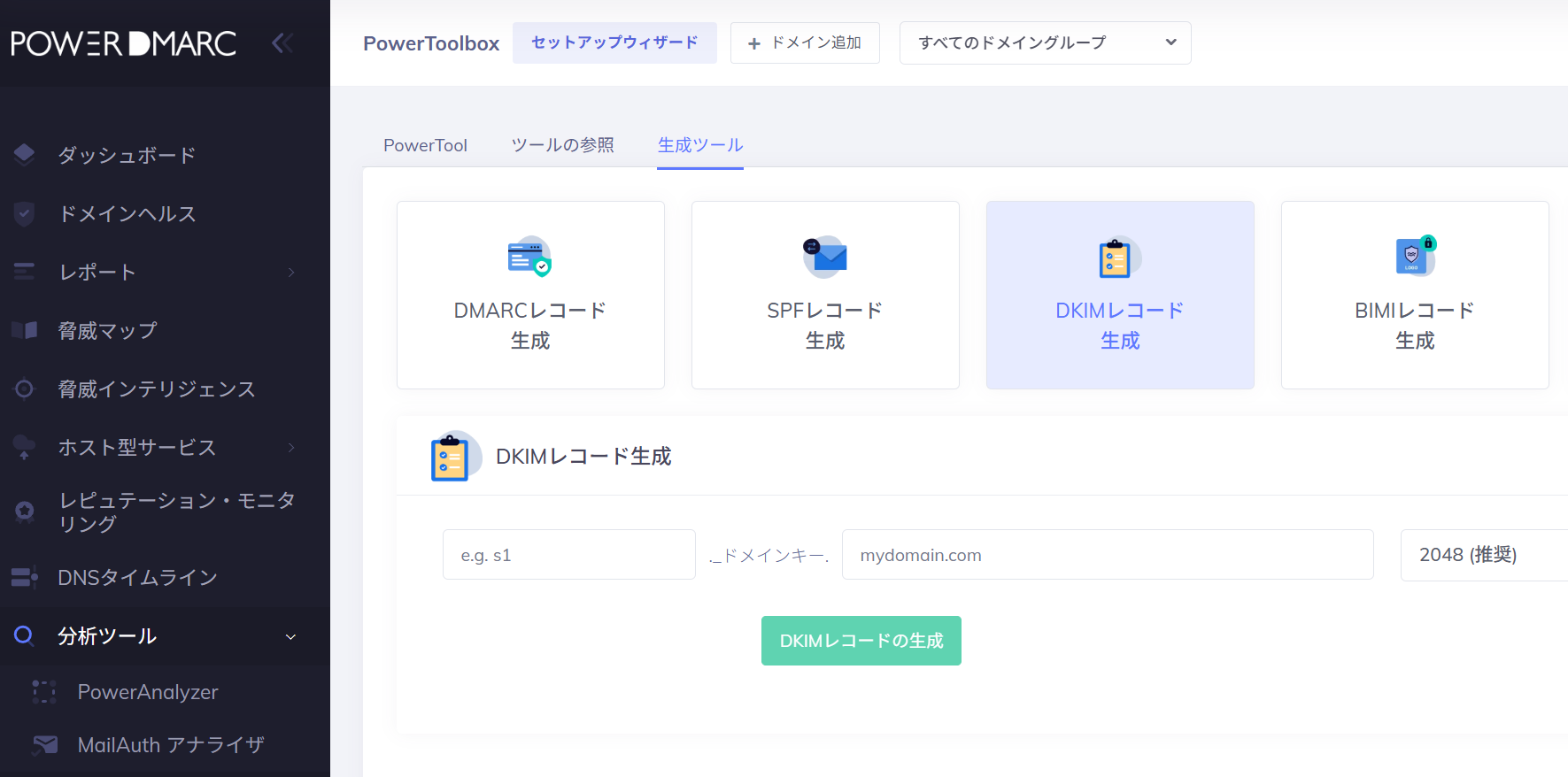 PowerDMARCに無料で登録し、DKIMレコードジェネレーターツールを使用してレコードを作成することができます。