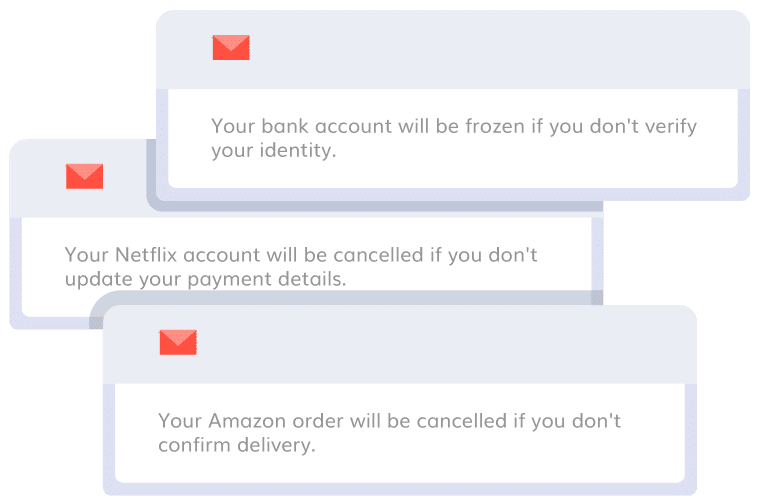 詐欺師は、フィッシングメールで人々に衝動的な行動を取らせるため、偽の緊急性を作り出そうとします。