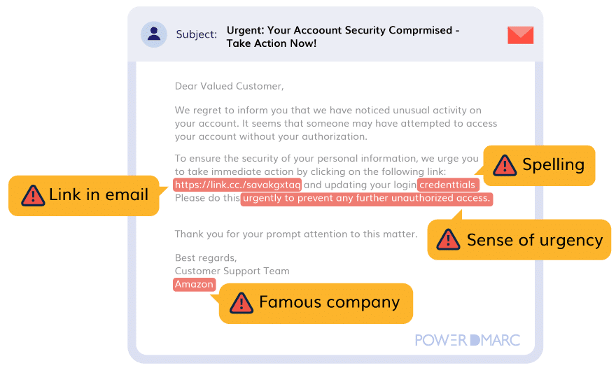 - メールの一般的な挨拶文は、詐欺の試みに典型的な個別性の欠如を示す場合があります。