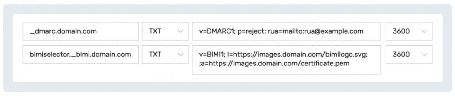 BIMIルックアップツールを使ってレコードが有効であることを確認する必要があります。 - ホスティング型BIMIソリューションを利用すれば、DNSに直接アクセスすることなくBIMIレコードを必要に応じて更新でき、さらにロゴやVMCをホスティングすることも可能です。