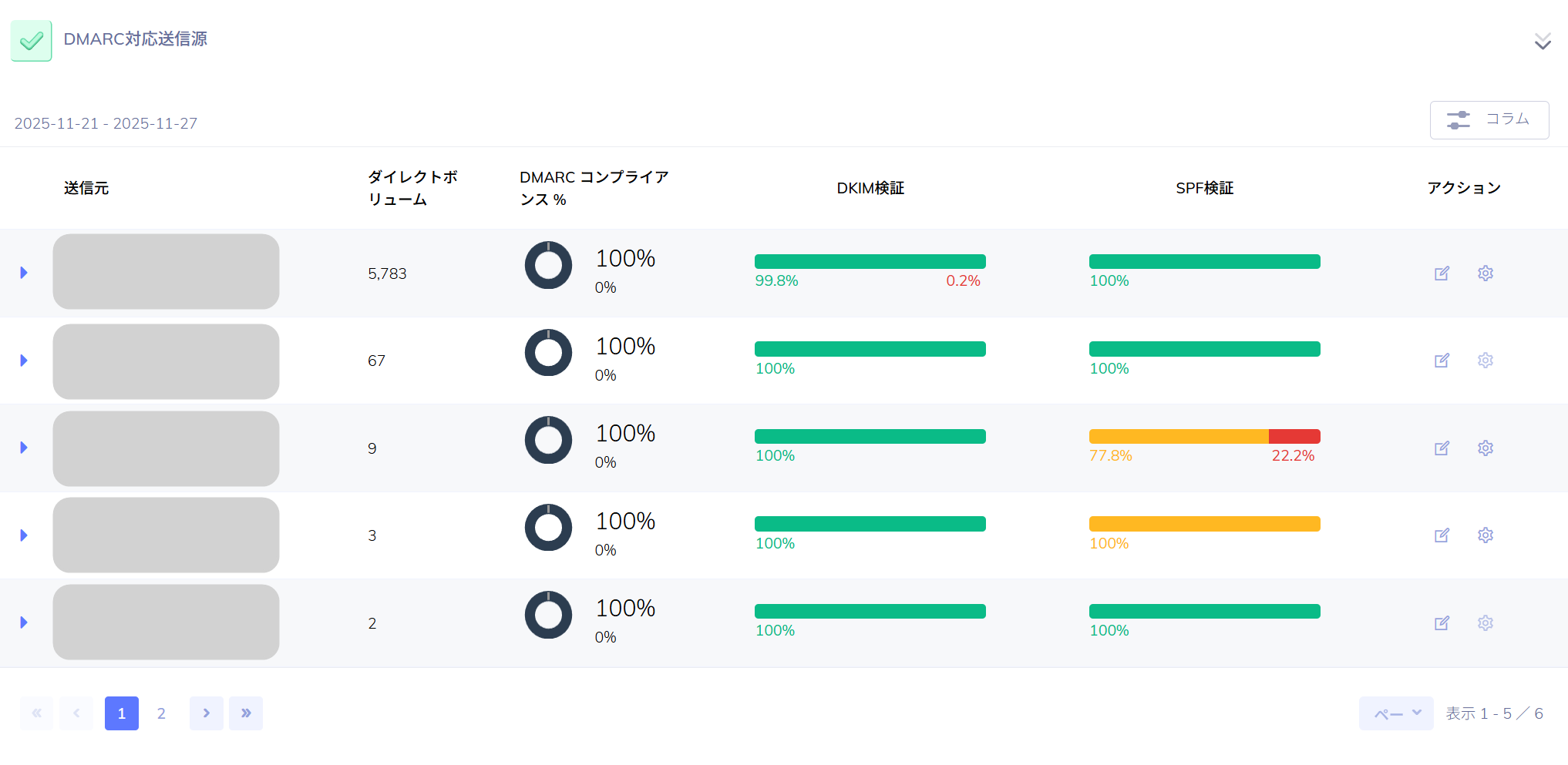初めてDMARCを設定する場合は、「none」ポリシーを使用して、ダッシュボードおよびレポートビューからすべての送信元を監視してください。