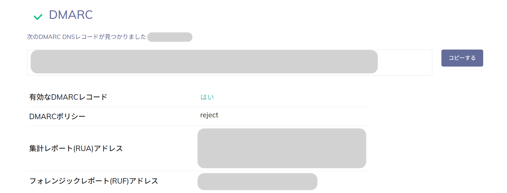 さらに、このDMARCレコードにはruaタグが設定されていないため、DMARC「none」ポリシーの監視目的が活用されていない状態です。