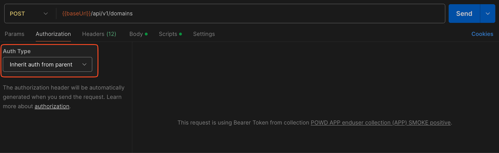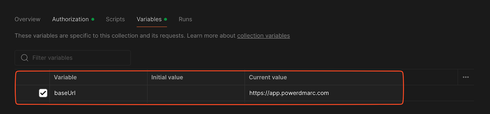 https://app.powerdmarc.com/ を設定します。- コレクションを編集 > Authorization セクション