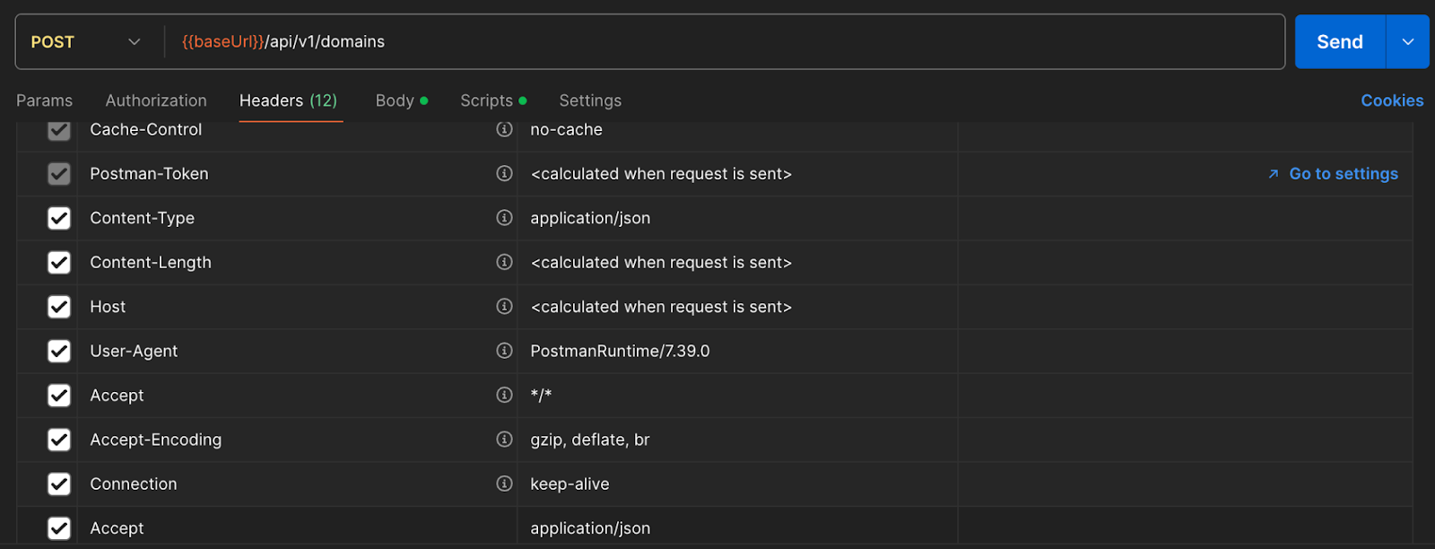 - リクエストヘッダー - Postman はリクエストヘッダーを自動生成します。