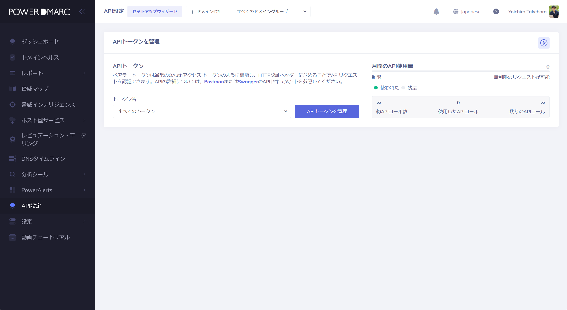 「APIトークンを管理」というボタンをクリックします。