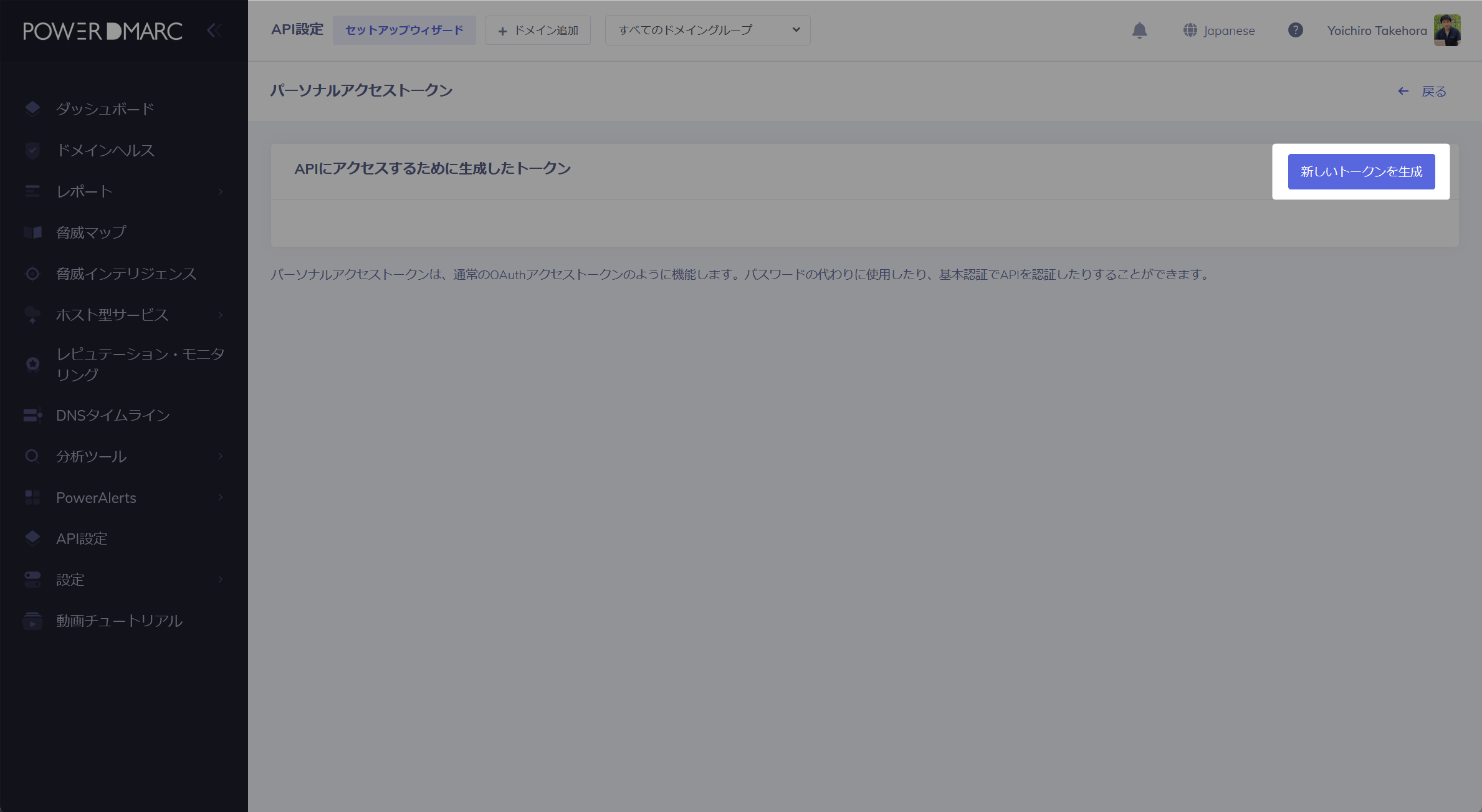 まず、API接続に必要なベアラートークンを生成します。