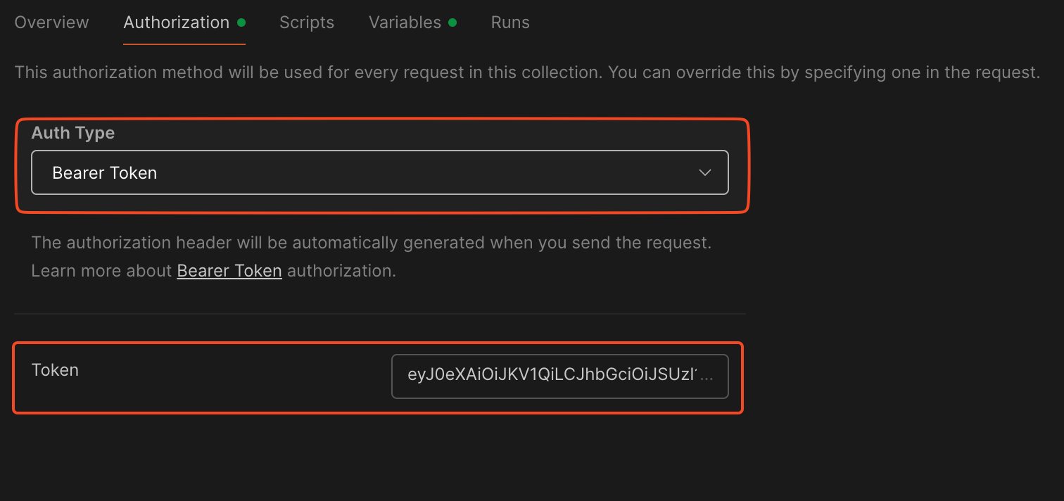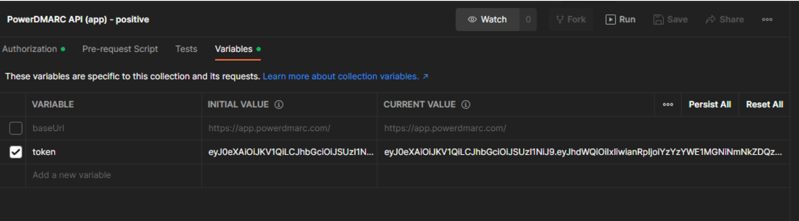 - コレクションを編集し、トークン変数を作成します。