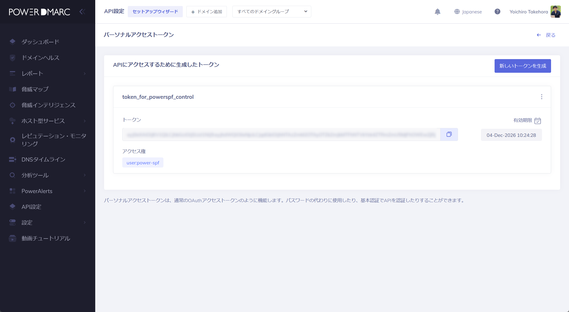 生成されたトークンは、1年間有効です。
