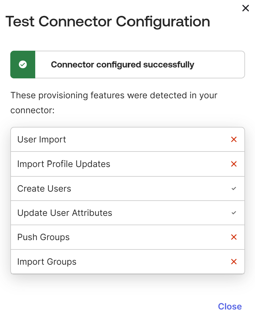 - 「SCIM Connector Base URL」に、SAMLシングルサインオンページから取得したSCIMエンドポイントのベースURLを入力します。
