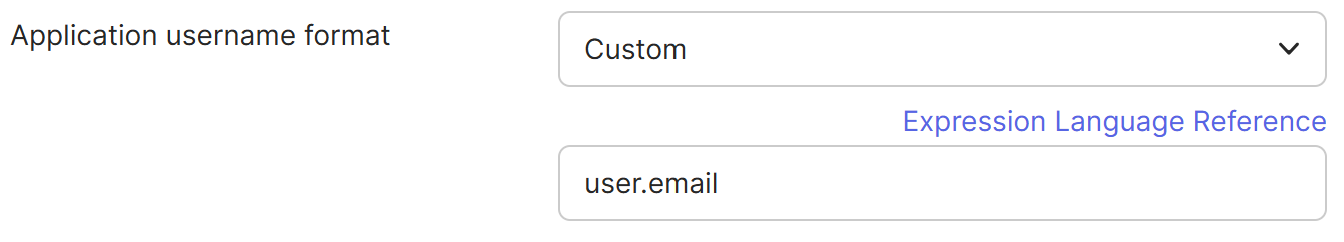 - 「Sign On」タブを開き、「Edit」ボタンをクリックします。「Credential Details」セクションで、「Application username format」として「Custom」を選択し、表示された入力欄に「user.email」と入力します。その後、「Save」ボタンをクリックします。